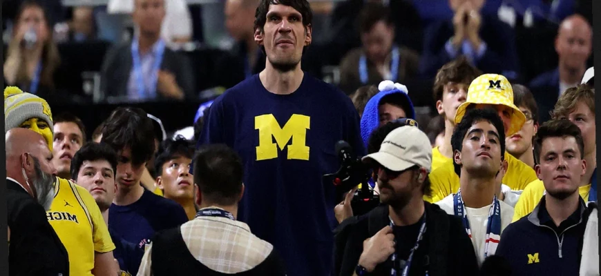 Один из самых обсуждаемых моментов финального матча мужского баскетбольного чемпионата NCAA в понедельник включил в себя неожиданную встречу. Гигантская звезда НБА Бобан Марьянович, известный своим впечатляющим ростом в 2 метра 24 сантиметра, встретился с вирусным фанатом из Флориды, чье взаимодействие быстро привлекло внимание. Эта уникальная встреча, запечатленная на видео, стремительно набрала популярность в социальных сетях и стала широко обсуждаемой темой в интернете.