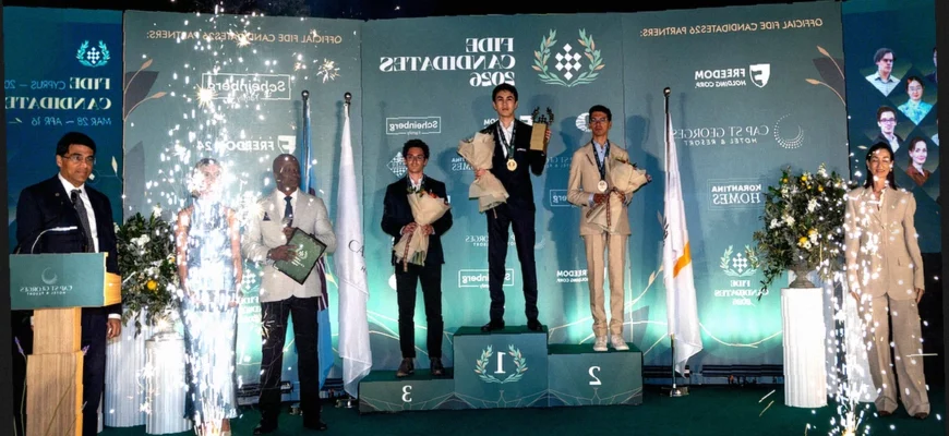Завершилась церемония закрытия Турнира Претендентов 2026 года, проходившего на Кипре. Более двух недель напряженных соревнований собрали вместе игроков, организаторов и гостей. Вечер, организованный в отеле St. George’s Hotel & Resort, включал музыкальные и танцевальные номера, а также вручение наград. Особые почести были оказаны Ваишали Рамешбабу и Джавохиру Синдарову, одержавшим победу в женском и открытом турнирах соответственно.