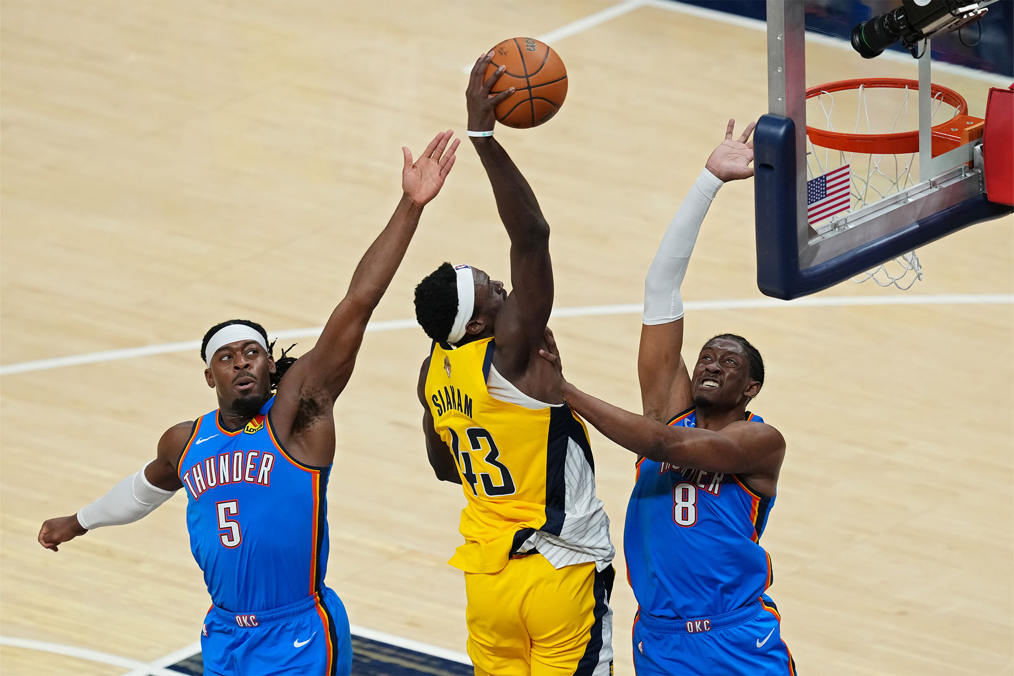 Сиакам не смог настолько сильно использовать несоответствие, чтобы Дайно отказался от состава с маленькой пятёркой. На самом деле, в концовке матча в составе «Тандер» отсутствовали как Хольмгрен, так и Хартенштейн, а их места заняли Уоллес и ещё один игрок. Но если «Оклахома-Сити» продолжит эту стратегию в серии, «Пэйсерс» могут начать активно заигрывать Сиакама, позволяя ему работать против более низких защитников.
