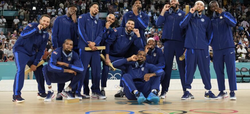 Игроки, выбывшие из состава 2024 года: Леброн Джеймс, Стефен Карри, Кевин Дюрант, Джру Холидэй, Деррик Уайт.