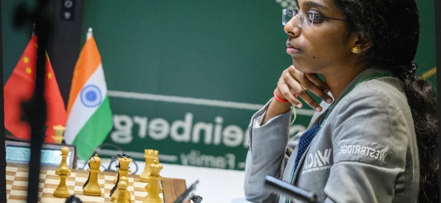 Вайшали Рамешбабу одержала единственную победу дня, воспользовавшись поздней ошибкой Тань Чжунъи, что позволило ей выйти на чистое второе место.